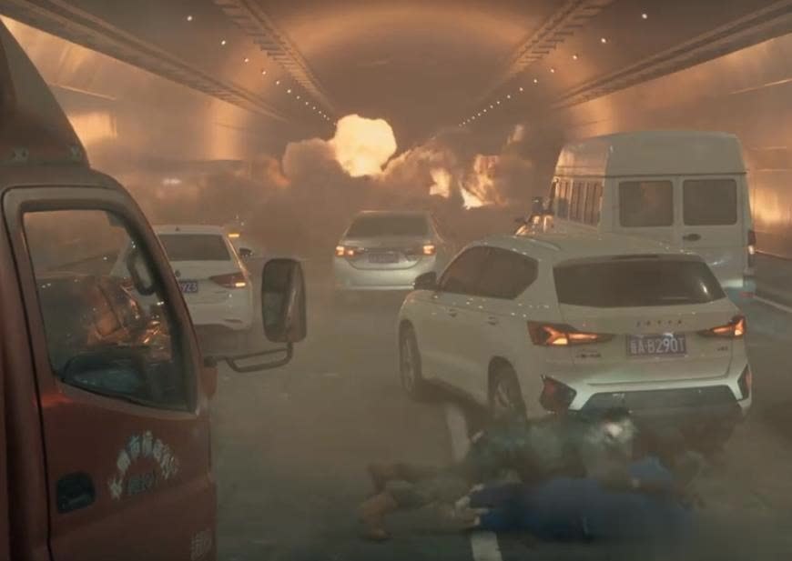 还剩最后一分钟,凌峥嵘跟另外一个陌生人,艰难将司机架着往隧道出口跑。