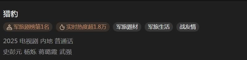 《猎豹》是首部聚焦“猎豹突击队”的作品,在腾讯视频播出。